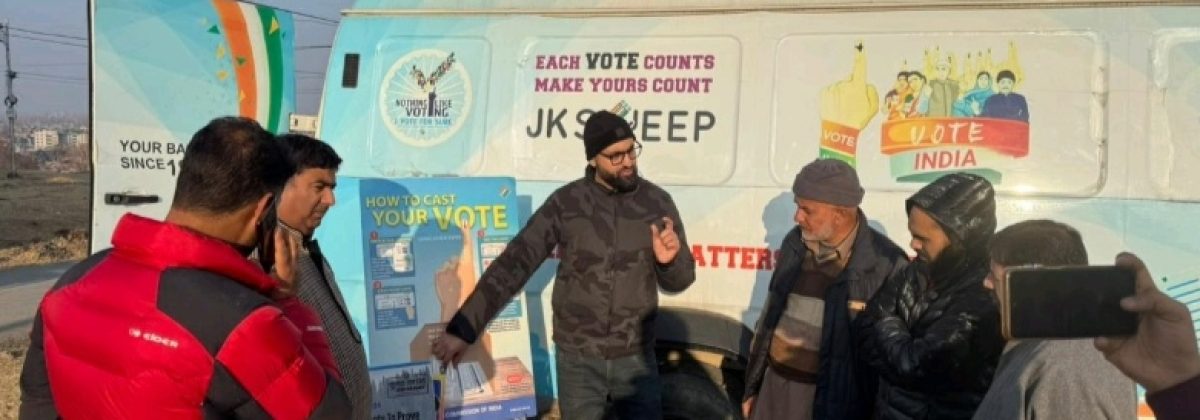 In a significant effort to strengthen electoral participation, the Office of the Chief Electoral Officer (CEO), Jammu & Kashmir, in collaboration with the District Election Office (DEO), Budgam launched an innovative voter awareness initiative under the Systematic Voters’ Education and Electoral Participation (SVEEP) programme. As part of the campaign, the mobile awareness van titled “Wheels on Democracy” toured key areas of the 27–Budgam Assembly Constituency, engaging first-time voters and other stakeholders with limited exposure to the electoral process.