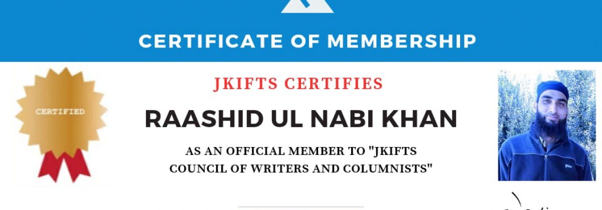 “Love you brother. You are the first PROVISIONAL member who has been awarded official membership in JKIFTS. You reflect and educate the society through the enlightened knowledge of Qur’an and noble teachings of our beloved Prophet Muhammad( PBUH) – that I believe is the ultimate motivational philosophy in revolutionizing lives. Hope you will serve the organization with the same passion and intellect. May Almighty Allah bless you.